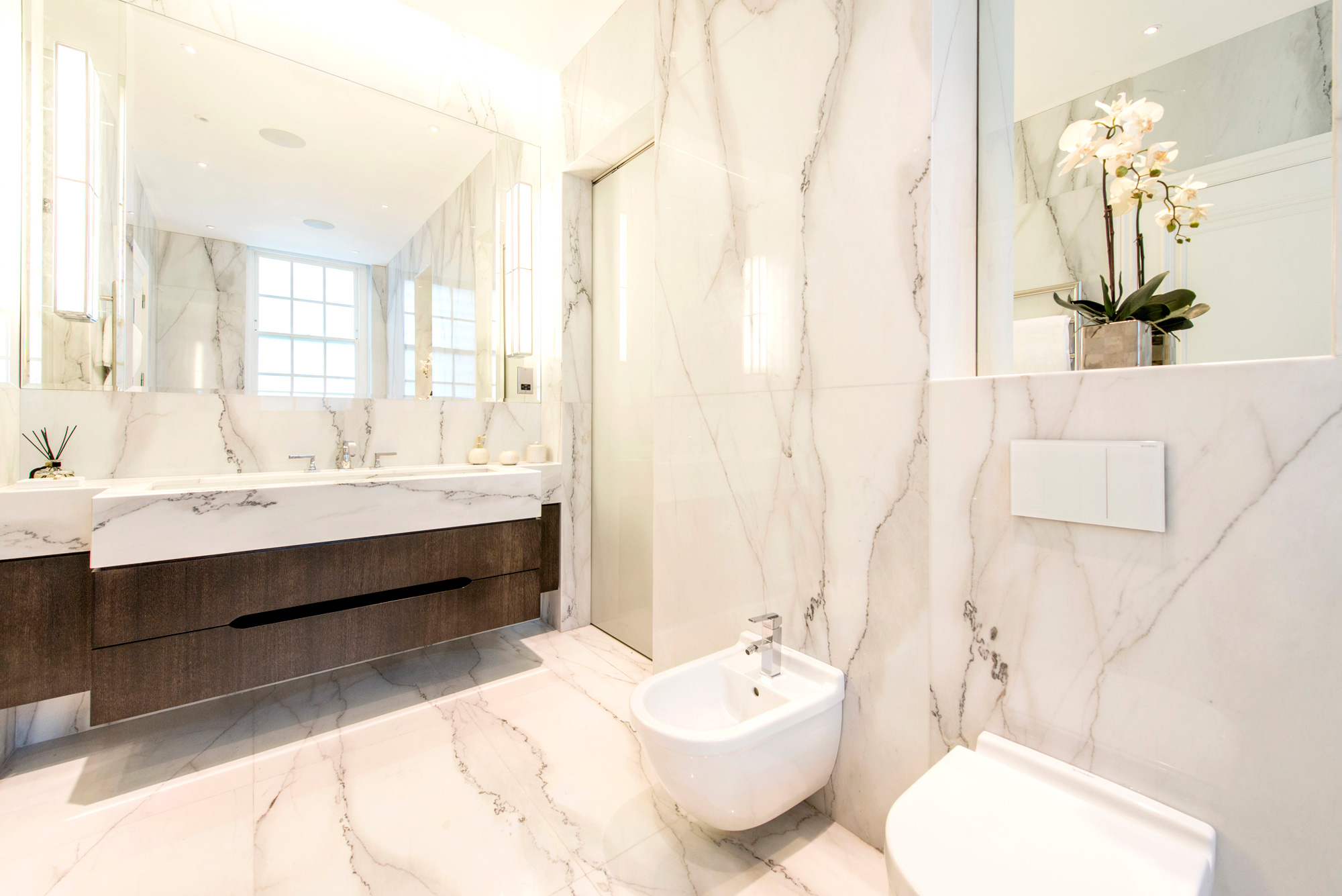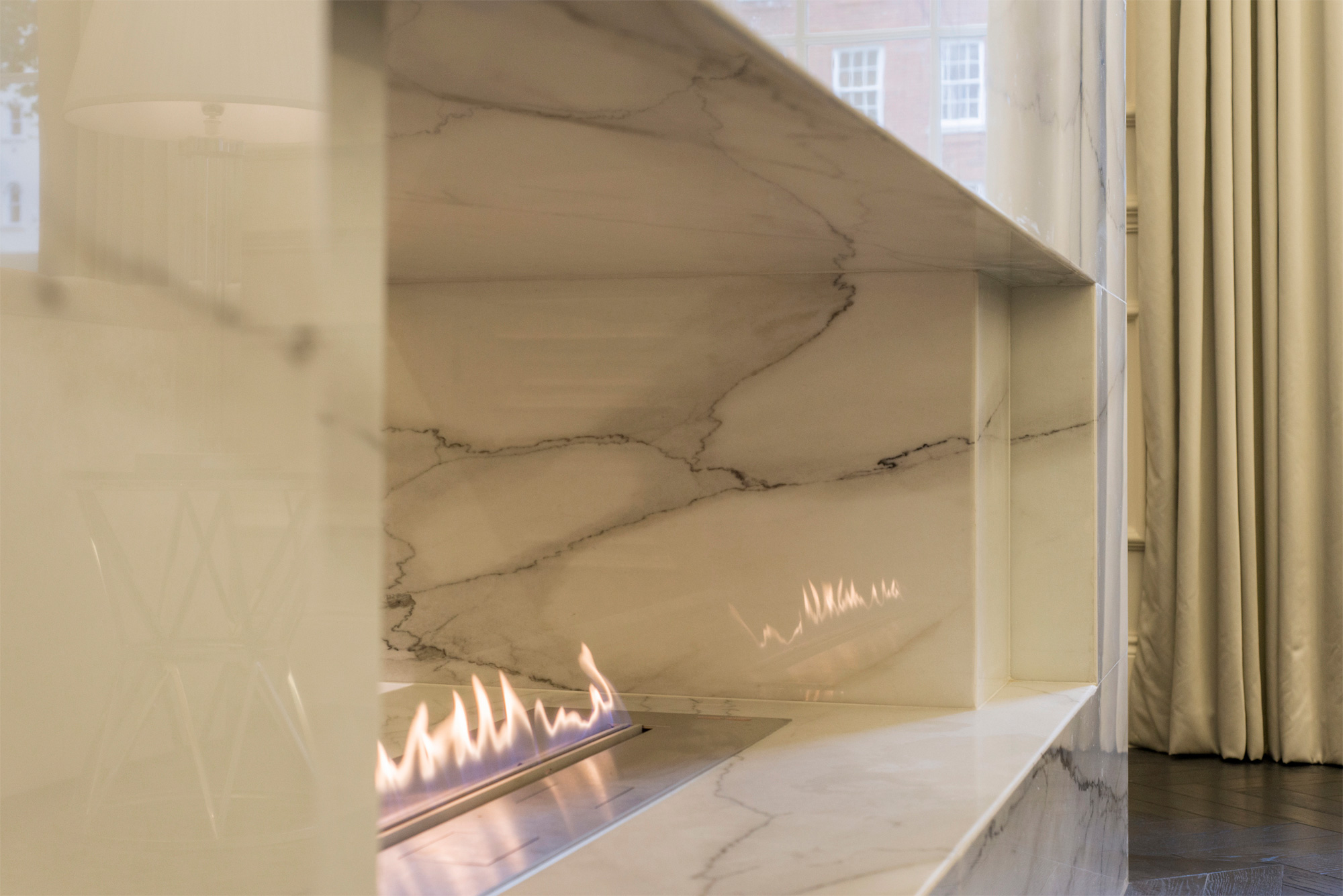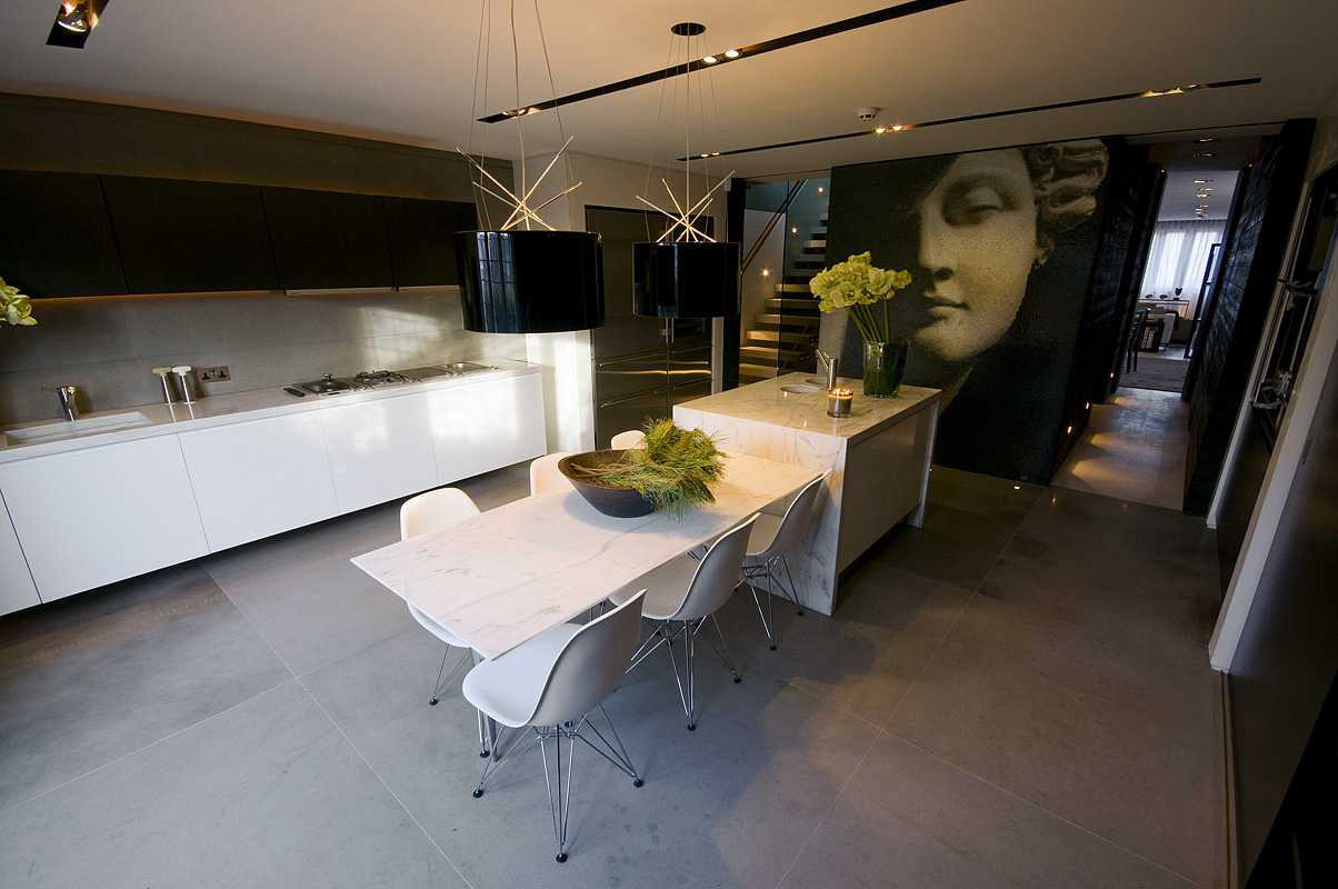 Pietra Serena Limestone Floor - Calacatta Oro worktops and table