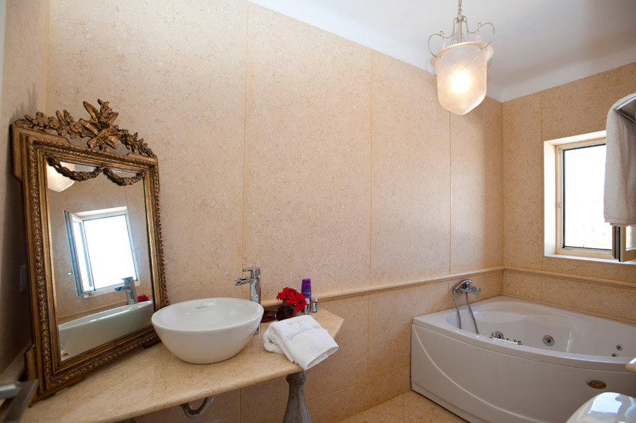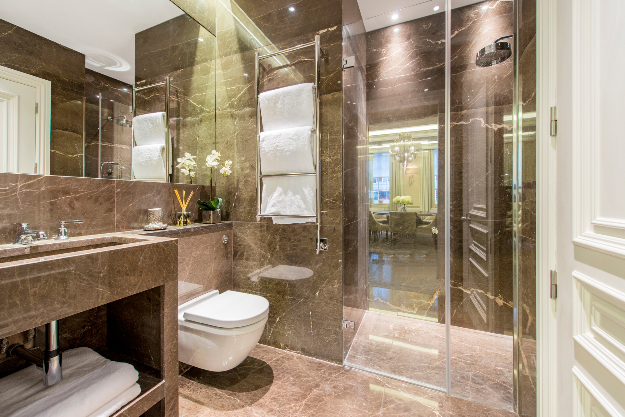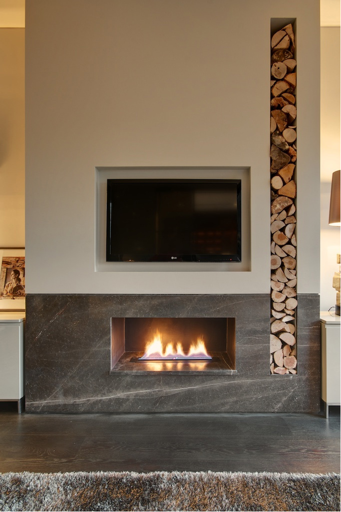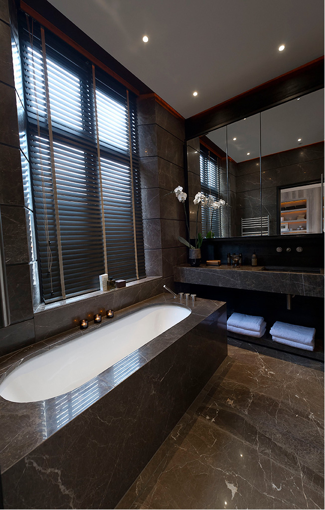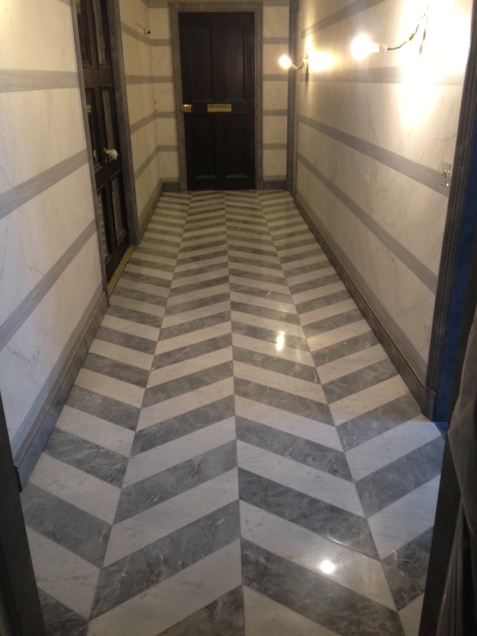Pietra Serena Limestone Floor - Calacatta Oro worktops and table